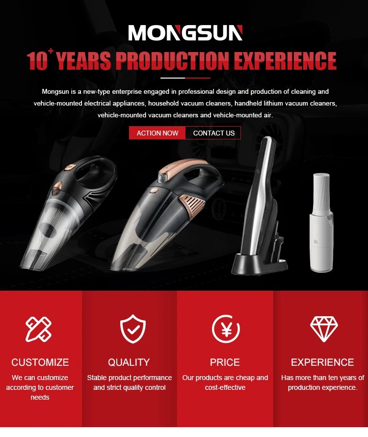 Copper motor, vacuum degree, stable power, low noise, high power, secondary air cover structure, aluminum air leaf, PET filter, secondary filter cover, power line card protection, Led lighting, dustproof baffle, color box with handle, packaging heat shrinkable film processing, cigarette tip with fuse.
