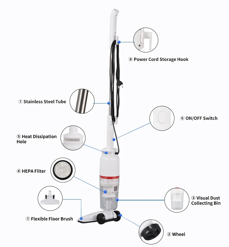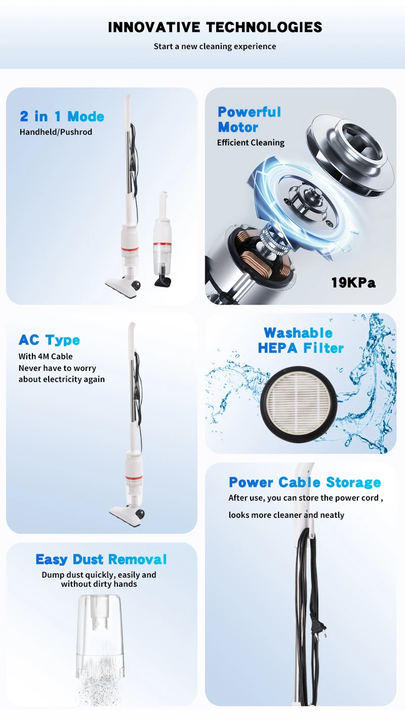 Home Cleaning Wired Vacuum Cleaner 600W 19Kpa Suction Handheld Vacuum Cleaner for Floor Care